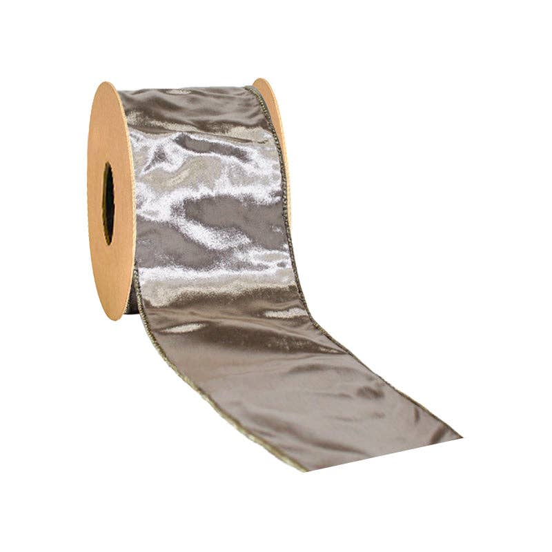 4" Wired Premium Velvet Ribbon w/ Tissue Back | Platinum/Gold | 10 Yard Roll